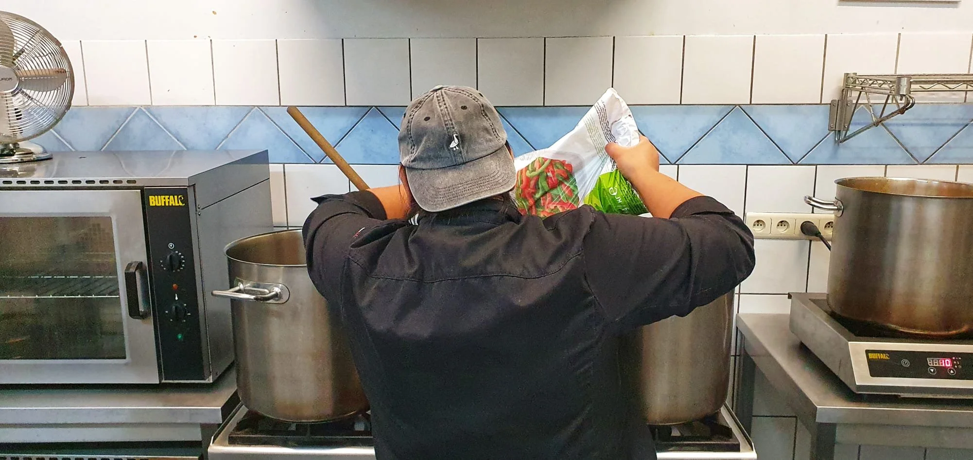 On my second portioning shift, a little braver, I asked about joining the volunteers in the kitchen.